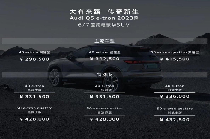 豪华中大型SUV,2023款奥迪Q5 e-tron “一价全包”!