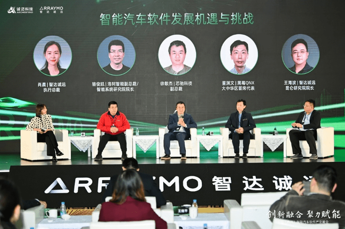 在圆桌论坛上,智达诚远执行总裁肖晨,洛轲智能副总裁、智能系统研究院院长骆俊凯,芯驰科技副总裁徐敏杰,黑莓QNX大中华区首席代表董渊文,智达诚远昆仑研究院院长王海波从汽车制造商、芯片、操作系统等角度,围绕“智能汽车软件发展趋势与机遇”分享了真知灼见。跨域融合的E/E架构是汽车产业链发展的必然要求,加强合作协同,是打开产业高质量创新发展的关键钥匙。