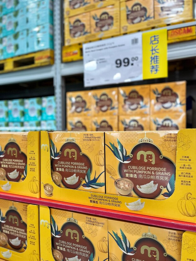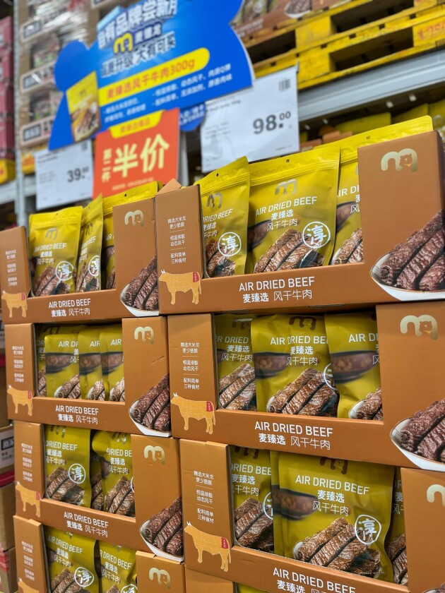 走进宽敞明亮的麦德龙徐东会员店,记者看到消费者们推着购物车在悠闲的购物。家住徐东的王女士表示,近期要带小朋友去香港迪士尼玩,约五小时高铁直达,非常方便。她的购物车里面放了麦臻选银耳汤、麦臻选南瓜燕窝粥、风干牛肉等,王女士说:“这些食品开罐即食,方便又营养,口味很适合小朋友。麦臻选风干牛肉,配料表干净,牛肉蛋白质含量高,而脂肪含量低,作为零食来说十分健康。”