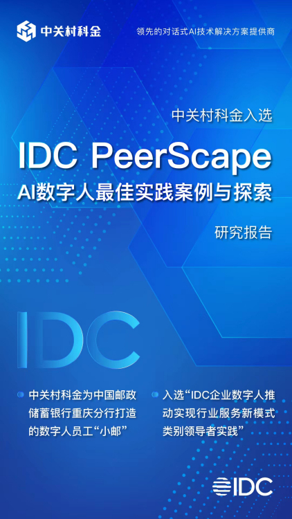 近日,全球权威咨询机构IDC发布《IDC PeerScape:AI数字人最佳实践案例与探索》研究报告,中关村科金携手中国邮政储蓄银行重庆分行打造的数字人员工“小邮”项目案例,入选“企业数字人推动实现行业服务新模式类别领导者实践”。