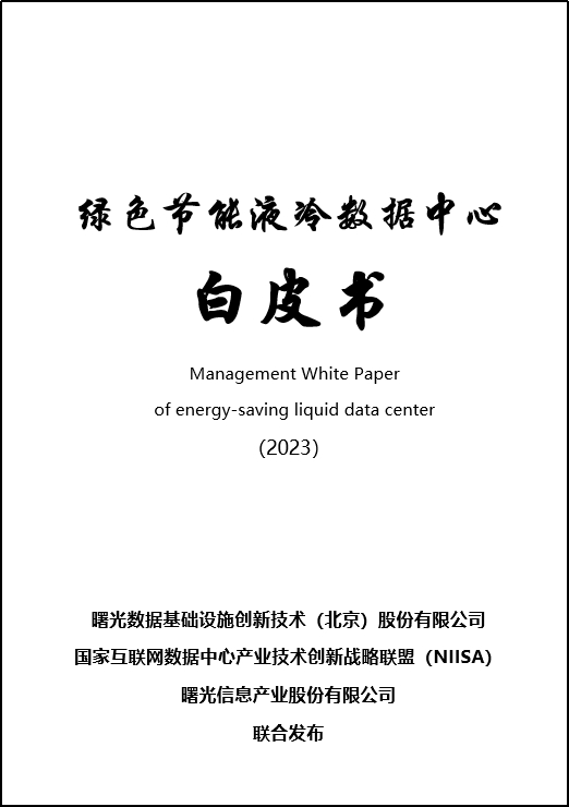 白皮书由国家互联网数据中心产业技术创新战略联盟(NIISA)牵头,曙光数据基础设施创新技术(北京)股份有限公司、曙光信息产业股份有限公司共同编写完成,围绕绿色节能数据中心发展趋势进行深入洞察,并就当前主流液冷技术展开介绍。本白皮书涵盖了冷板式液冷、单相浸没式液冷和相变浸没式液冷等三大主流液冷方式,内容涉及液冷数据中心建设与运维、液冷基础设施关键设备、液冷IT设备及众多行业案例。