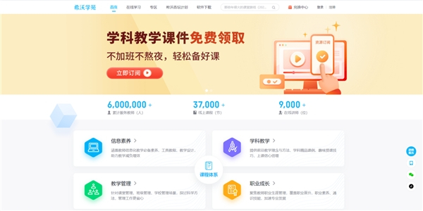 汇聚资源,希沃打造希沃学苑学习平台,采用专家参与、名师共创的模式,搭建了围绕信息素养、学科教学、教学管理、职业成长四个维度的培训课程体系,帮助教师提升专业教学能力。