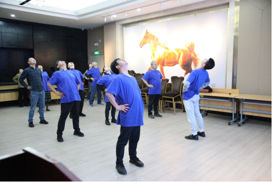 毛之奇主任以及其北京体育大学硕士研究生宋观维、申莹一起带领帕金森患者进行了《塑神诀》训练。《塑神诀》是毛之奇主任带领学生融合了八段锦、平衡训练、拉伸训练、冥想、瑜伽、中医经络、音乐治疗等各自的特点,专门针对帕金森患者所创造出来的一种新型的训练方式。每次20分钟,旨在改善帕金森患者的步态平衡障碍、肌肉僵直、语言障碍、记忆障碍等问题,进而提高其的生活质量。
