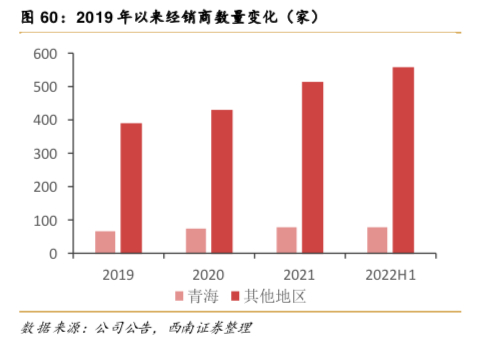区域布局上,公司围绕扎根青海、立足西北、拓展全国布点的战略,持续拓展成长空间。持续夯实青海大本营市场,深入推进甘青一体布局,不断做强基地市场; 进一步强化陕西、北京、河南等战略布局市场团购型客户培育及样板市场开发,不断提升市场渗透率;持续推进全国化布局,积极布局国际化市场,其成长空间不断拓展。