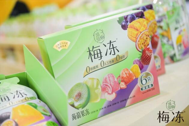 据梅冻品牌的介绍,梅冻甄选全球天然食材,当日采摘阳光水果鲜榨成桨,天然水果原浆含量提升至40%+。另外,梅冻还重资打造世界一流的智能化梅冻科技工厂,汇聚全球领先产品工艺与专业设备,引入世界级ORIHIRO工艺和设备制造,采用正压过滤无菌锁鲜技术,0防腐剂0人工色素0脂肪,将鲜果浆融入高纤维蒟蒻,梅冻得以在0防腐剂的条件下,保质期达到9个月。