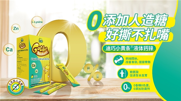 为了解决家长对孩子生长发育的痛点,迪巧研发上市了一款0添加人造糖的迪巧小黄条液体钙锌,钙、锌、赖氨酸同补,三效合一可以改善食欲、强健骨骼,有效促进孩子的生长发育。添加的木糖醇属于天然甜味物质,在自然界中广泛分布于各种水果、蔬菜、谷类。因此是比较安全。