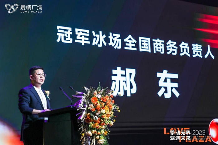冠军冰场全国商务负责人郝东作为商户代表致辞,对于保定爱情广场创新的商业模式表示肯定,并感谢保定爱情广场能提供更多的市场机遇、投资机遇、发展机遇,愿携手保定爱情广场开创更加灿烂美好的明天!