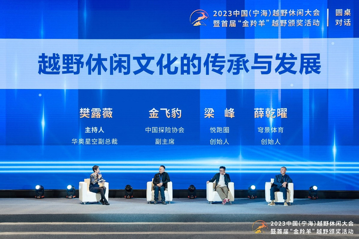 在大会的圆桌对话环节,秉承“交流、合作、发展”的理念,中国探险协会副主席金飞豹、悦跑圈创始人梁峰与穹景体育创始人薛乾曜就“越野休闲文化的传承与发展”这一话题,分别从多方角度进行了观点碰撞。