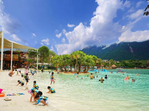 与一般的水上乐园相比,森林海嬉水乐园更加“亲子友好”。园区内有童趣满满的抓鱼摸虾区;天阳湖上游船、皮划艇等活动也深受大小朋友的喜爱。从广西北海银滩运来的白沙,打造了森林海岛风光,同样适合亲子家庭前来打卡拍照。