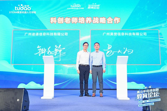论坛上还举行多项战略合作签约仪式,广州途道信息科技有限公司与广东教育出版社、乐鑫信息科技(上海)股份有限公司、广州昊誉信息科技有限公司、福建云物智大(龙岩)教育科技有限公司代表签署战略合约。包括科创教学课程内容研发与应用推广战略合作、物联网与芯片的应用研发战略合作、科创老师培养战略合作、福建省科创教学研发、应用、推广战略合作等。此次签约,这不仅体现出合作伙伴对途道机器人品牌及产品的信心,更是展示出了途道机器人强大的品牌号召力,同时这些合作将为广大行业伙伴和用户提供更加优质的智能机器人控制技术方案和服务。