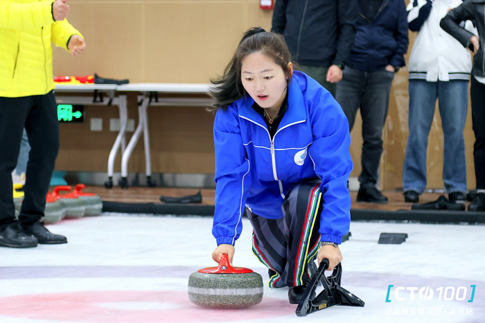 本次 CTO 100 企业服务研习团·北京站的试炼活动为冰壶。冰壶一直有着冰上的“国际象棋”之称,它考验参与者的体能与脑力,展现动静之美,取舍之智慧。冰壶的记分规则是比赛两个团队中,谁留下的在靶心圈内的壶距离靶心最接近,谁就得分,反之,则没有任何分数。策略很重要,最后掷壶的选手发挥更为关键。冰壶的比赛过程,其实就是对团队协作的最好诠释。
