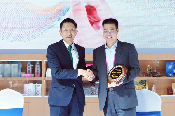 厦门吉宏科技股份有限公司总经理张和平(右)与富士胶片商业创新东亚区及中国区图形通信部总经理兼富士胶片(中国)印艺传播事业部总经理大木雄次签署战略合作