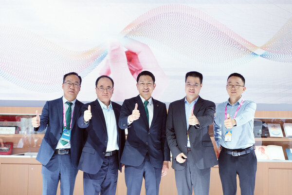 左起:富士胶片(中国)印艺传播事业部印刷解决方案销售部华南营业总监赵永峰、印刷解决方案销售部总经理饶晓波、富士胶片商业创新东亚区及中国区图形通信部总经理兼富士胶片(中国)印艺传播事业部总经理大木雄次、厦门吉宏科技股份有限公司总经理张和平、采购中心副总监杜海国