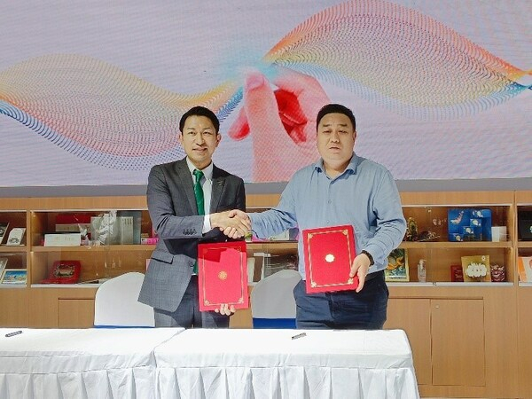 郑州印之星印务有限公司李铭董事长(右)与富士胶片商业创新东亚区及中国区图形通信部总经理兼富士胶片(中国)印艺传播事业部总经理大木雄次签署战略合作