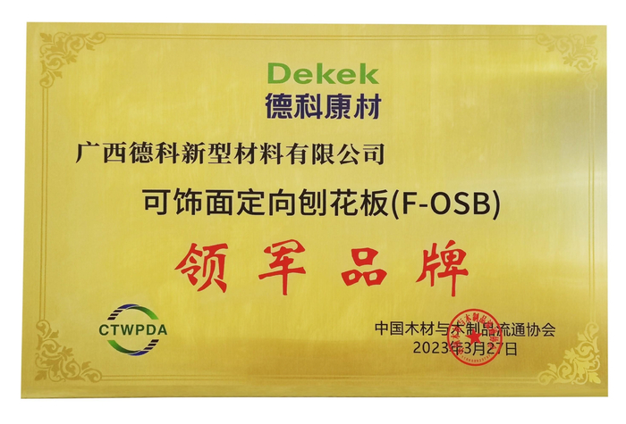 打响品质、创新牌,德科康材荣获“可饰面定向刨花板(FOSB)领军品牌”