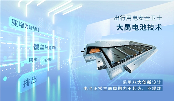 电池包结构安全更是影响动力电池安全性的关键。在结构创新上,长城汽车自主研发的大禹电池技术布局数十项完全自主研发的核心专利技术,突破电池本征、PACK设计、BMS 3大维度39个热失控故障节点,全面保障电池安全。同时通过热源隔断、双向换流、热流分配、定向排爆、高温绝缘、自动灭火、正压阻氧、智能冷却八大创新设计理念,实现“控+导=通”热失控安全矩阵,有效解决了困扰行业的NCM811高镍电芯安全性问题,保证在“大容量高镍电芯”“电池包任意位置”“加热两个电芯并连续触发热失控”的情况下都能实现不起火、不爆炸,开启行业电池安全发展新方向,将电池安全提升到全新高度。