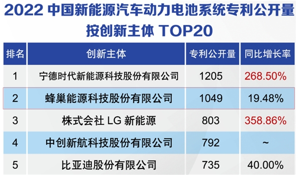 不仅如此,依托森林生态体系,长城汽车以蜂巢能源为主体深耕动力电池技术领域多年,硕果满枝,拥有丰厚的动力电池技术储备。不久前,中汽中心信息科技有限公司发布了《2022 年中国汽车专利数据统计分析》(数据来源:全球汽车专利大数据平台 www.autopat.cn)。数据显示,在动力电池领域,蜂巢能源2022年专利公开量1049件,同比增长19.48%,在TOP20创新主体中仅次于宁德时代,高居第二位。