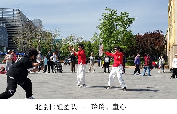 据了解,北京伟姐团队中70后的小伟、60后的玲玲和50后的童心。70后的小伟是北京伟姐团队的组织者,自团队成立起,小伟老师结合队员们整体身体的情况,尽量选择一些既欢快,又适合大家都能跳的步子舞或曳步舞,为了提高大家对跳舞的兴趣,几乎做到了至少每周一新舞,为了增进队员们相互之间的友谊;提高团队的凝聚力,有时舞后和大家一起做游戏,每年时节会和大家一起郊游、野餐等。队员们说:北京伟姐团队就像一个大家庭,每天晚饭后如果不出去跳舞总好像缺少了点什么,有时候即便是下雨也要打着雨伞出来跳舞,自从跳舞起,大家身体素质都有,不同程度的提高。