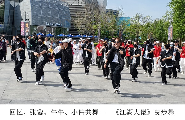 来自国家大剧院的回忆团队,队长虽然是个女性,但是每个成员都身穿黑色西服,佩戴墨镜,跳起舞来各个像个富有活力的男孩子非常酷炫,反应出新时代年轻人的活力。回忆老师说:这次交流会非常成功,离不开团队队员们的支持和努力,正是平时留下的汗水,才浇灌出像今天这样受欢迎的成果。