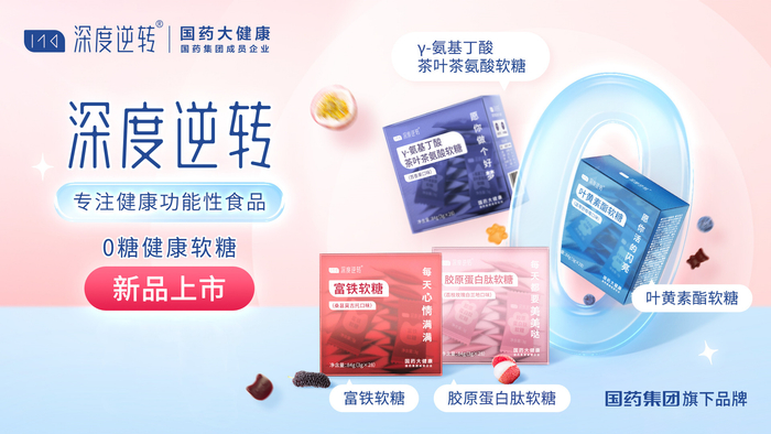 国药大健康自有品牌“深度逆转”进一步挖掘消费者需求,于今年春季针对注重健康及爱美人群推出了健康软糖系列,分别是叶黄素酯软糖(蓝莓野樱莓口味)、胶原蛋白肽软糖(荔枝玫瑰白兰地口味)、γ-氨基丁酸茶叶茶氨酸软糖(百香果口味)、富铁软糖(桑葚口味);