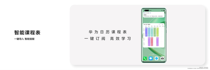 针对学生用户,华为日历中的智能课程表具备拍照一键导入课表、桌面卡片智能提醒、便捷分享以及更多个性设置等,帮助nova星人轻松管理课程信息。