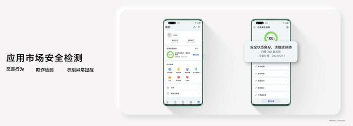 华为应用市场升级应用安全检测功能,全天定期自动扫描此设备是否存在贷款诈骗、刷单诈骗、冒充客服诈骗等风险应用,让用户可以及时了解应用安全状态,并为用户提供操作处理建议。