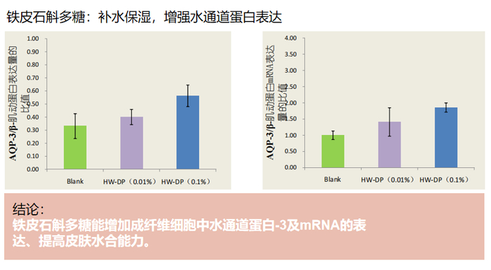 仅拿保湿这一项功效来说,市面上有一些普通基础保湿霜,因受成本及定价所限,往往在产品里添加一些价格较低廉的油脂及保湿剂构成其主要的保湿体系,就从保湿效果来说,这很难对AD群体有明显作用。润贝舒婴儿多效润肤霜主打的“铁皮石斛茎提取物”,其对细胞水通道蛋白的表达具有良好的促进作用。这一成分使得润贝舒UNBESO全线产品的保湿体系相较传统“补水-锁水”的二元体系更多出了一层科技通路,可更好的提升干燥肌肤的水合能力,改善肌肤干燥。