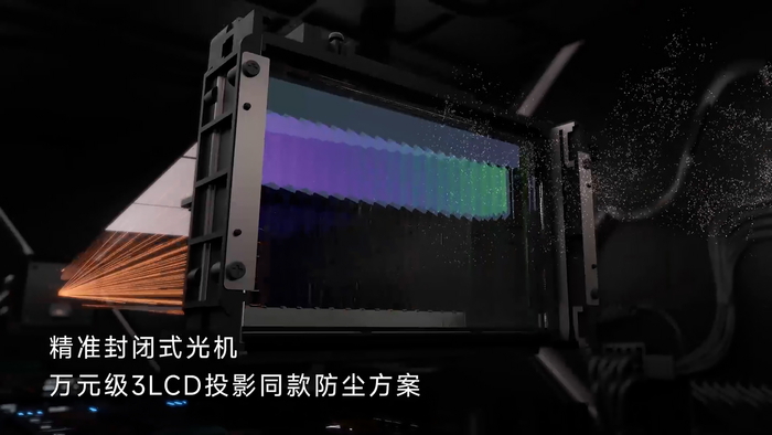 回顾LCD投影的发展历程,早期的开放式光机由于不能有效防尘,从而存在画面有尘斑的问题。而目前行业通用的封闭式光机方案,虽然解决了防尘问题,但由于光机被完全包裹的原因,又带来了散热差、亮度低、寿命短的问题。而快乐星球自主研发的精准封闭式光机,采用了万元级3LCD投影同款的防尘方案,仅对核心成像器件LCD屏进行精准定点防尘保护,内部风路仍保持开放设计,在TurboCool风冷技术和定制光学器件的加持下实现了亮度倍增。全新的方案突破了行业固有的技术桎梏,同时做到了画面无尘斑、高亮度和长寿命。