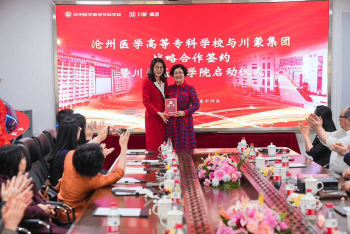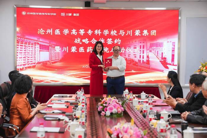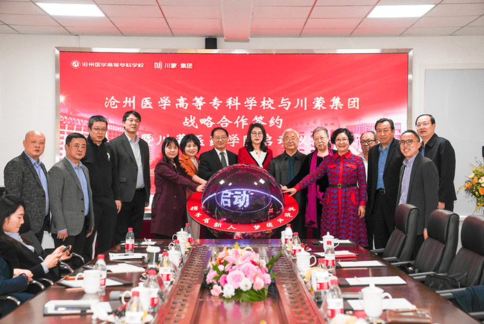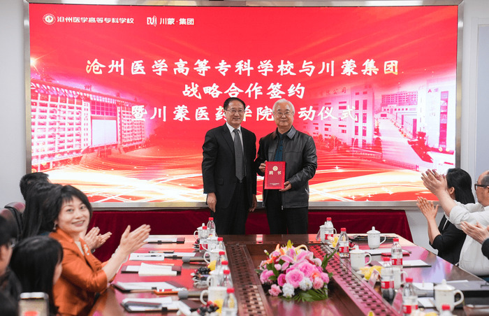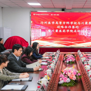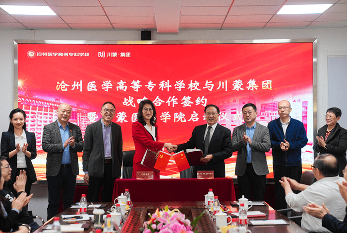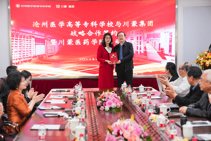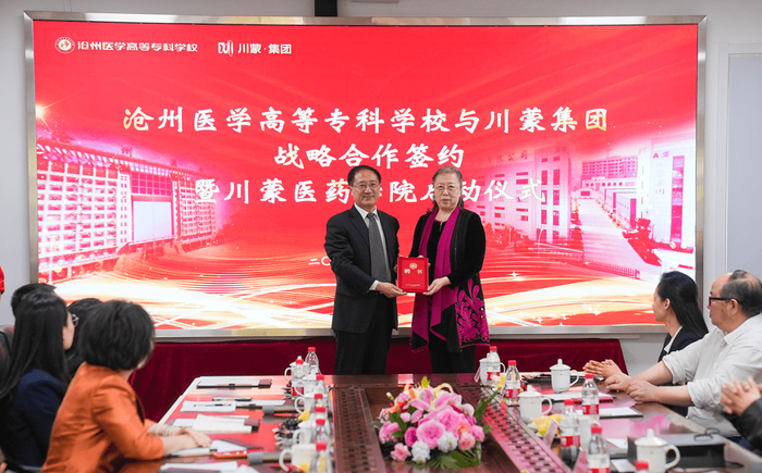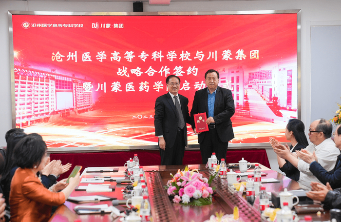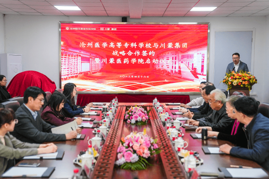 2023年4月16日,沧州医学高等专科学校与北京川蒙集团在京共同签署战略合作协议,沧州医专“川蒙医药学院”正式揭牌成立,同时举行了国医大师、国家名老中医聘任仪式。这标志着国家名医指导下的校企双方共同培养基层中医药人才的创新探索正式拉开帷幕。
