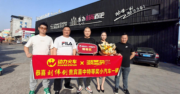 4月15日晚23时许,汽车大奖之一在浙江永康本色酒吧,由幸运消费者刘先生现场扫码开出。当晚,动力火车就与终端经销商联系,并于16日邀请幸运消费者到现场领取大奖。