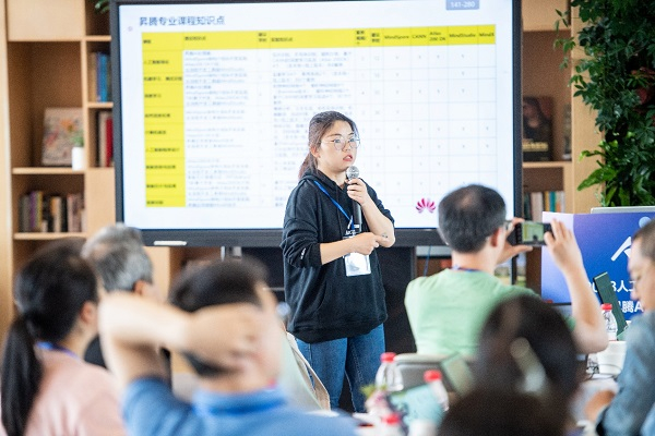 本次师资培训分为理论教学和实操教学两阶段,在理论教学部分,昇腾AI产品解决方案工程师陈秀红分享了昇腾人才发展加速计划-昇腾人工智能课程资源,以优秀课件为例,阐述课程融合的多种具体方案。并从底层硬件到上层应用,整体介绍昇腾 AI 全栈技术平台入门,包括昇腾AI处理器、异构计算架构CANN、昇思MindSpore框架、MindX SDK以及全流程开发工具链MindStudio。