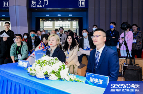在展会现场,广州视睿电子科技有限公司(希沃)与京东图书文教举达成战略合作,希沃营销平台总经理周晓锋、京东图书文教大客户部负责人庞青等出席了该活动。