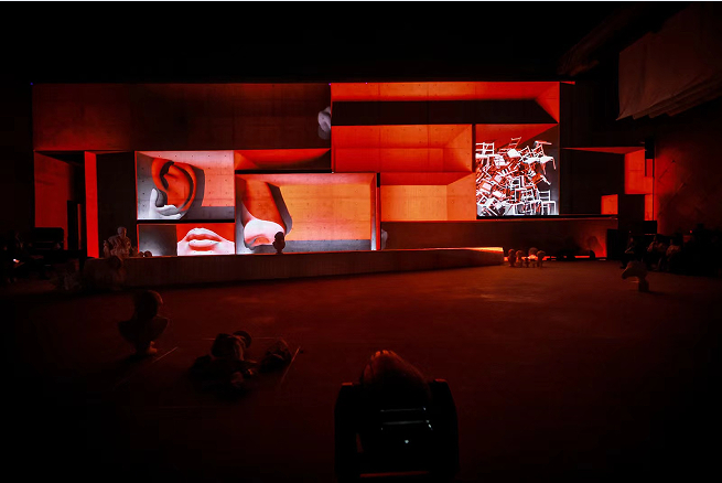 夜晚的798CUBE盒院已经提前被装扮成了沉浸表演的现场,众多嘉宾媒体和戏剧艺术好友们等待着一场未知的感官风暴,在这个春风沉醉的夜晚,盒院的墙体上投射出一些神秘诗句,像是宴会的主人对所有来客的欢迎致辞: