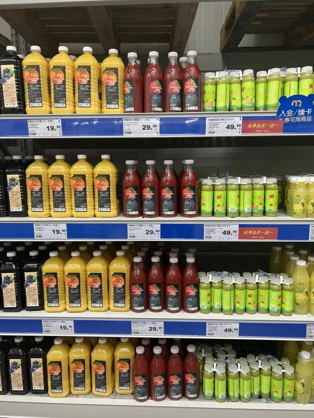 在麦德龙雨花商场,记者向商场负责人了解到,春天到了,麦臻选系列的NFC果汁非常受欢迎,“例如这款新鲜草莓汁配料100%草莓汁,没有额外添加糖。家长完全不用担心小朋友摄入过多的糖分。”