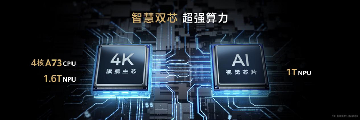 华为智慧屏 S3 Pro采用了4K旗舰电视才会用的高性能芯片,所搭载的4K旗舰主芯拥有四核A73的CPU,主频可以达到1.5GHz。相比市面上的主流电视品牌,华为智慧屏 S3 Pro在开机、应用启动速度、操作流畅性上都更胜一筹。即按即开,播放速度快人一步。在AI算力方面,4K旗舰主芯还配载了NPU单元,算力高达1.6 TOPS,支持AI HDR增强、AI清晰超分等功能和强大的场景识别能力。