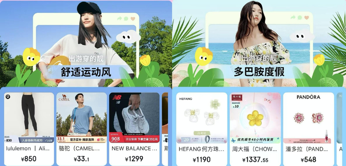 与此同时,出游季会场还特别设置了防晒专区,以及宝藏穿搭、出游好物两大分会场,依据山系户外、舒适运动、多元复古等9大穿搭风格趋势,以及露营、骑行、徒步、垂钓4大户外热门项目,为消费者带来更丰富的出游好物选择、更多元化的购买场景、更沉浸的购物体验。