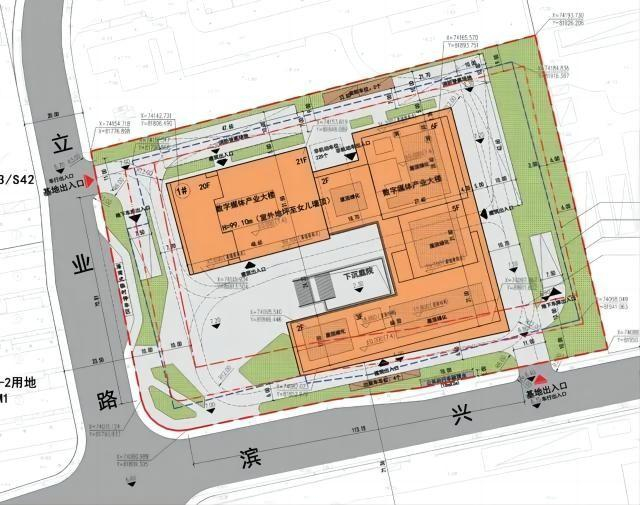 此地块范围东至恒生电子股份有限公司,南至滨兴路,西至规划立业路北延伸段,北至浙江网盛投资管理有限公司,周边则围绕着阿里巴巴、网易、海康威视等行业巨头们的园区和大楼,地段不错。