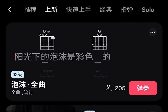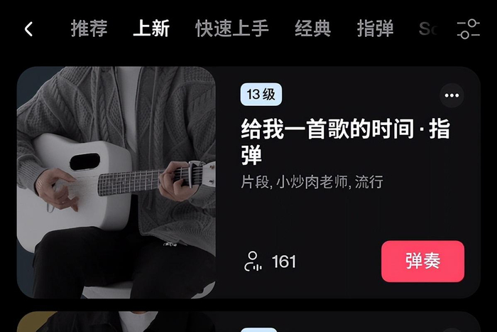4. 喜欢吉他,但没很多时间练琴的职业人士。系统中有许多经过重新编配、利用碎片化时间就能弹会的歌曲精华节选,这对上班族或者学业繁忙的用户来说,非常适合。