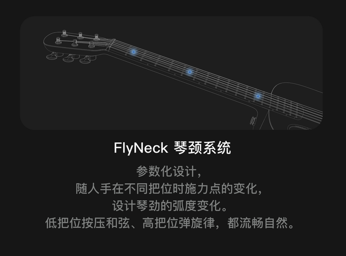 2.3mm 超低弦距 + 较软的琴弦 + 出色的 FlyNeck 形态琴颈和超薄的燕尾设计,让 play 系列琴的手感表现非常优秀。音色方面,得益于拿火不断深化的 4-MASS 谐振设计技术,让 36 寸的琴体也拥有清晰的颗粒感和出色的低频表现。
