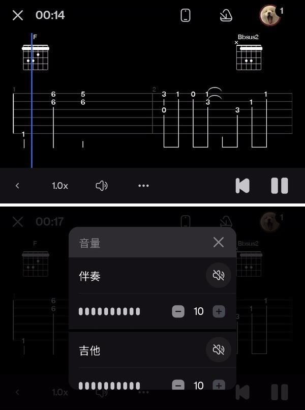 歌词谱六线谱全都有,还能从吉他上⼀键投屏到⼿机!慢放、暂停、回放,陪你练到会。切换⼈声、旋律、节奏,像在 KTV 切原唱、伴唱⼀样简单,自己在家嗨或多人合唱,体验感好玩得让人停不下来。