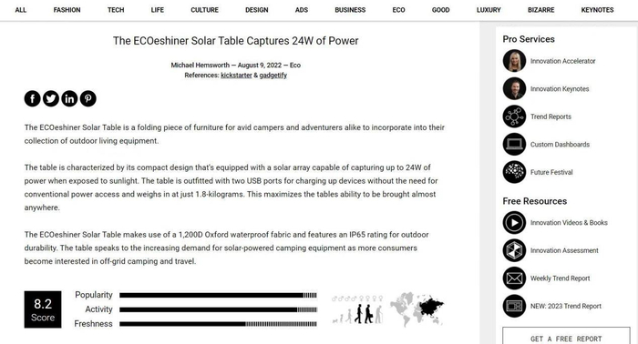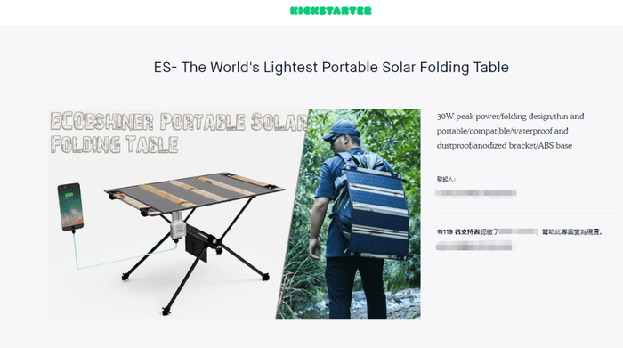 ECOeshiner 太阳能野营折叠桌国内首发上市