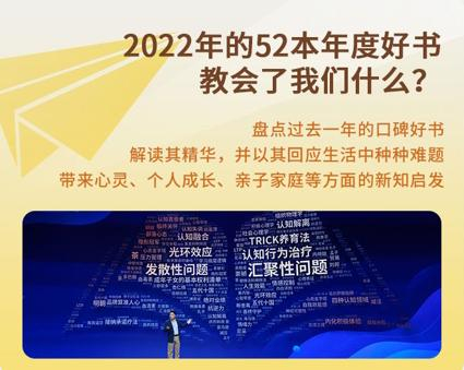 这场人与书的双向奔赴,让阅读从个体的读书行为,拓展为一种文化共识。在过去的十年中,樊登讲过400多本书。今年的“知识进化论”,将围绕“答案,在书中”这一主题展开。面对大家共同的“人生之问”,樊登将以年份为线索,遴选出10本“人生书单”,帮助读者在书中找到答案。“十年十本书”,同样是樊登读书过去10年的回顾和总结。