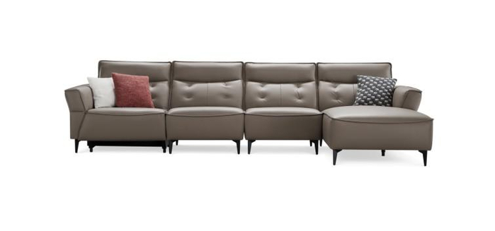 这款沙发作为现代系列的杭州亚运会纪念款沙发,运用气质天际灰的配色,至于家居生活中呈现出大气、典雅的气质。而搭配细腻柔韧头层牛皮面料,使得这款沙发拥有更好的视觉质感。同时纯色结合几何极简的设计风格,让这款沙发拥有了更多是设计感与高级感,展现出简约而不简单的气质,也展现了左右沙发高品质沙发原创设计的魅力。