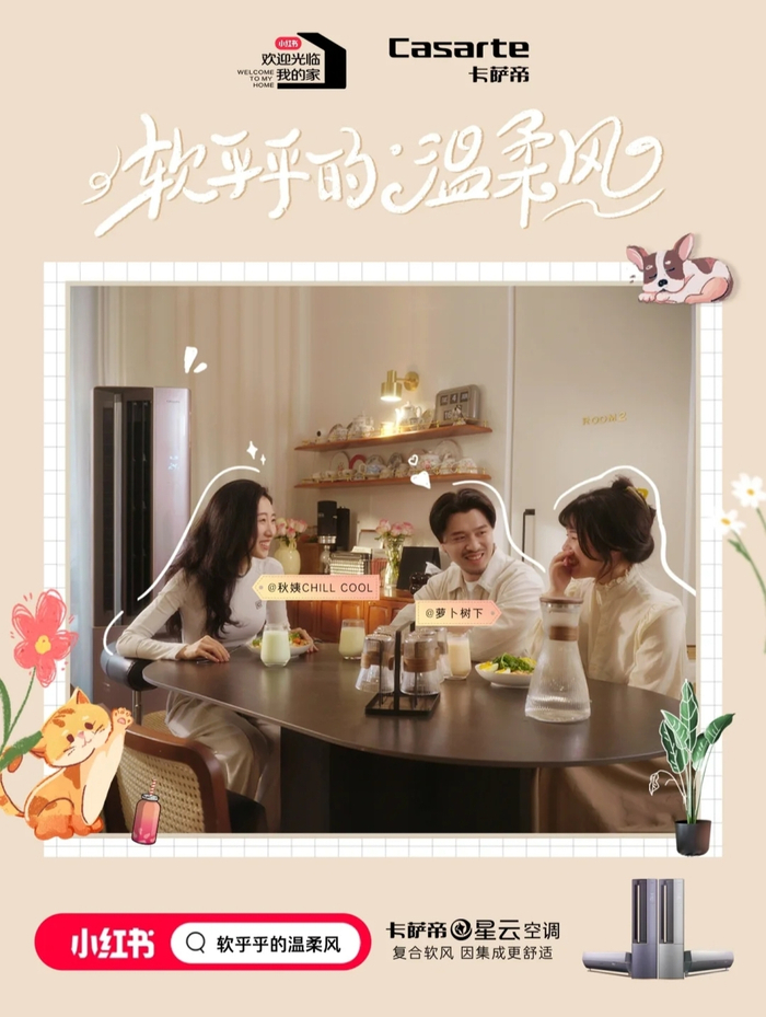 小红书携手卡萨帝空调,邀请2亿小红薯共同体验软乎乎的温柔风
