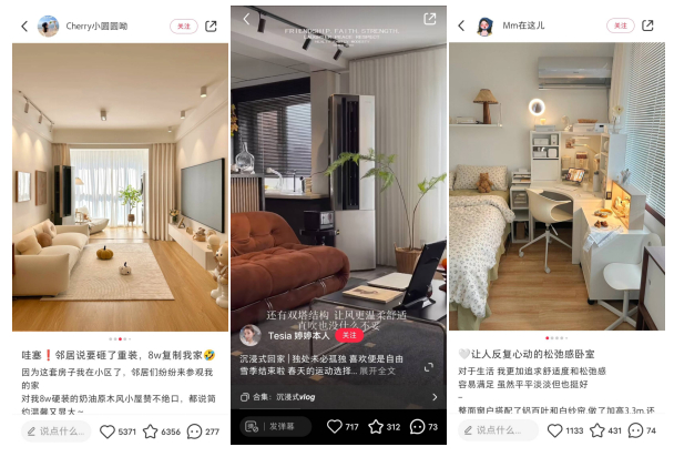在官方内容的带动下,@Cherry小圆圆呦、@Mm在这儿、@Tesia婷婷本人也纷纷加入种草大军,从沉浸式居家、旅游vlog、家装好物分享等多场景接力种草产品,炒热话题引发更多优质UGC内容输出,进一步提升话题的丰富度,ugc内容沉淀为优质资产,为产品带来持续种草,帮助本次活动实现破圈传播。