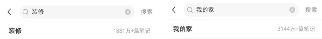 小红书平台上就有这样一群小红薯,通过笔记分享精致有格调的生活方式,表达年轻新潮的生活态度。同时,他们也习惯于在小红书站内收集家装灵感,发现新的家居好物。在小红书搜索“我的家”,相关笔记高达3100多万篇,“装修”的相关内容也有1300多万篇。
