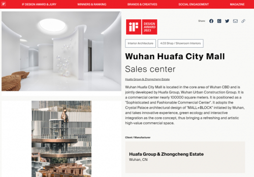 本次获得iF设计大奖的武汉华发中城商都,位于武汉CBD核心地段,由华发集团与武汉城建集团·武汉中央商务区城建开发有限公司联手开发,商业体量近10万㎡、定位“精致时尚的商业文化中心”。
