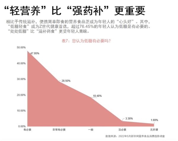 由新华网联合多方于2022年发布的《Z世代营养消费趋势报告》显示,如今我国城市常住居民平均年消费健康养生开支已超过1000元,其中18到35岁人群占比83.7%,稳居消费第一阵营。