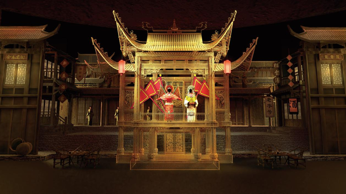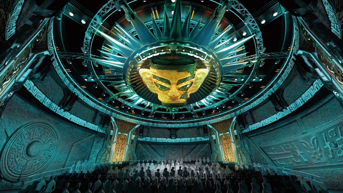 而“华谊兄弟星剧场”大剧场则汇集赵安、张纪中等一大批国家级演艺创作及制作团队,通过为德阳量身定制《重逢德阳》沉浸式、体验式、场景式融合秀演,充分展现德阳风采和德阳精神。从外星人飞船飞抵三星堆到古蜀三星堆大祭司到唐宋时期的德阳盛貌,从剑南春的香飘千年到中江挂面的传世技艺,到川剧文化的璀璨多彩到绵竹年画的色彩风韵,从三线建设时期的激情岁月到如今新时代的德阳新城的城市风貌。无论是沉浸式舞美风格还是剧本设计都将德阳这座城市厚重历史文化底蕴人文风情交相辉映。