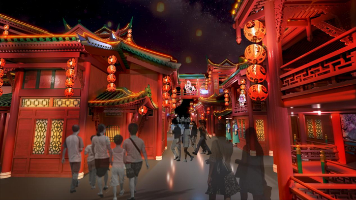 “戏剧演艺公园”华谊启明东方团队通过巧夺天工的电影置景技艺,全方位构筑“德阳万家灯火灯会”“青山不墨街”“千生万世十里桃花德阳里”“锦绣德阳楼”四大核心景观,再现唐宋时期德阳 盛世繁华的风貌气韵与市井气息。同时,七幕沉浸式歌舞剧《最德阳·上元奇幻夜》将在此上演,北京奥运会开幕式导演朴美花率领团队将担纲这里的创作。